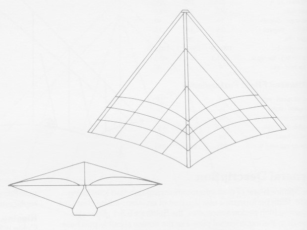A portable standard Rogallo, the Streaker’s frame consists of 5 foot tubes that connect by means of internal sleeving. It requires no tools for assembly. Extremes of the frame are permanently plugged with hardwood dowels.