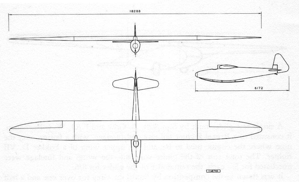 It features a three-piece cantilever wing with two spars. The undercarriage was a main skid plus tail skid. No airbrakes or flaps were fitted.