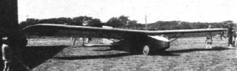 Its fuselage was rectangular in section, with spruce longerons and laminated wood frames. The sides were everywhere vertical but ahead of the wing it narrowed in plan and decreased in depth to a rounded nose. The downward sloping upper surface here was not flat but curved, formed from thin aluminium sheet. The pilot’s open cockpit was just in front of the leading edge, with a rubber-cord restrained canvas sheet between him and the aluminium surface, intended as protection in a crash. It contained some basic instrumentation, including an airspeed indicator and an altimeter, both with sensors well above the wing centre-section on a mast, as well as a compass.