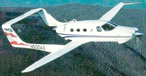 Created by Burt Rutan and first flown on 21 March 2000 (pilot Glenn Maben), the fuselage seats six, in between a tractor and a pusher engine, each of 350 hp.