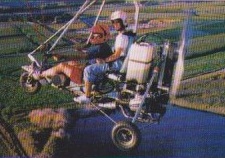 An aircraft style spaceframe fuselage forms the basis of the Baffo 11, in which a low-mounted inline four cylinder BMW K 100 drives a prop through a long toothed belt.