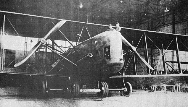 During 1916 AEG received an order for two R.I Giant four engine heavy bombers. R was an abbreviation of “Riesenflugzeug” (giant aircraft). All four engines were grouped inside the fuselage and drove four blade propellors at 750 rpm via shafts and gearboxes; a combination leather cone and dog clutch. Two blade propellors were installed later.