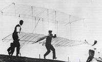 Initial plans were to build four flying machines, and for each member to personally oversee at least one project. The first of these was to be Bell’s kite, equipped with one of Curtiss’ motors. It took shape by December of 1908, but Bell wanted to test it as a glider before engine installation, so Selfridge, somewhat experienced in flight, was towed by a motorboat across a lake near Baddeck. The kitelike machine rose to an estimated height of about 170 feet, but then settled in the water still on tow, ruining many of its silk cells. While it was tediously undergoing repair, the group’s thoughts shifted to more conventional aircraft, such as those being flown in Europe at the time.
