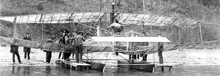 Curtiss fitted twin pontoons to his June Bug, renamed it Loon, and tested it in June 1909. It attained a surface speed of 27mph would not leave the water. During subsequent attempts it went out of control, sank in the shallows, and became frozen in the ice.