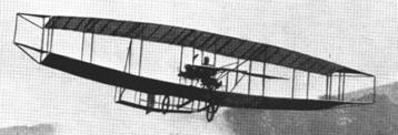 The June Bug was one of the lightest of biplanes, having a wing spread of forty-two feet and an area of 370 square feet. The wings were transversely arched, being furthest apart at the center: an arrangement which has not been continued. It had a box tail, with a steering rudder of about six square feet area, above the tail. The horizontal rudder, in front, had a surface of twenty square feet. Four triangular ailerons were used for stability. The machine had a landing frame and wheels, and weighed, in operation, 650 pounds.