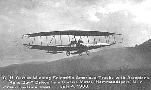 When in late 1907 the Scientific American had announced a magnificent silver trophy (it featured a world globe and a replica of Langley’s ill-fated Aerodrome) as an annual award for aviation competition, it went pretty much ignored by America’s relatively small fraternity of aeronauts until AEA decided to try for it. To this goal Curtiss’ “June Bug” design was dedicated.