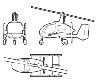 Design began in 1998 with two prototypes flown in 2002 and AeroCopter (Spain) showed the first production Futura two-seat ultralight autogyro at the Aero 2003 exhibition at Friedrichshafen, Germany, in April 2003. It was due to fly immediately after this debut.