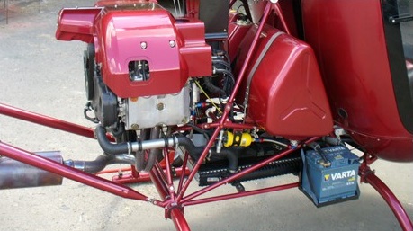 The lower composite belly-panel is screwed in to allow access to control linkages, wiring loom, and “Red-Top” racing battery. The doors can be removed, limiting the Vne to 150 kph / 80 kt at sea level. The single electronic ignition system is totally waterproof.
