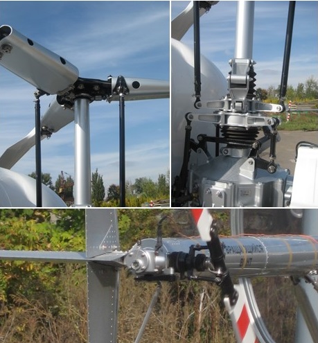The collective and cyclic control inputs are transmitted to the rotor system via duralumin tube control rods and levers.