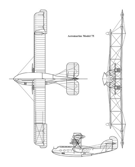 The Aeromarine 75s of 1920 were conversions of surplus USN Curtiss F-5Ls (actually ex-RAF Felixstowe F.5Ls). The conversion involved moving the two-place cockpit back to the trailing edge of the wings and installing passenger accommodations with side windows in the forward half of the hull.