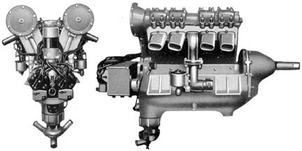 The 1915 B-45 was a water cooled eight cylinder Vee. The cast aluminum cylinders were set at 45° and the geared prop speed at .571.