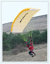 The Aeros Ballistic is a specialised wing for the speedflying / ground launch flights. A new design of wing with an ultra-thin profile and diagonal nervures add more rigidity and stability to this small and light wing in turbulence. The Ballistic is recommended for experienced pilots and GL parachutists due to the fast reactions and high maximum speeds.