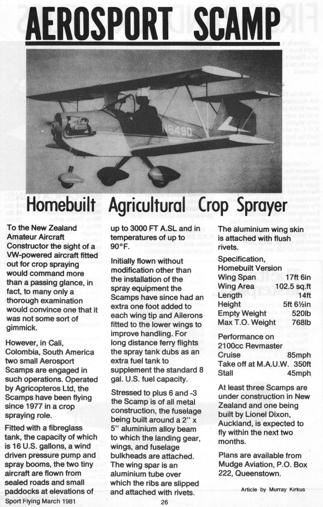 First flown in 1974, the Scamp can be built from either plans or a kit.