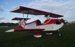 Designed by R D Fehlner, E B Trent and Harris Woods the Scamp originally with a tailwheel around a box keel of 5” x 2” extruded aluminium, to which are attached the landing gear, bottom wings, empennage, and fuselage bulkheads, as well as another extruded piece running vertically in front of the pilot to hold the top wing. All spars are tubular aluminium, and the strength in this basic structure gives it aerobatic capabilities. The Scamp can be used for limited aerobatics and is stressed to + 6G and -3G. An open-cockpit, single-seater biplane with T-tail, and tricycle undercarriage. A fibreglass engine cowling was supplied in the kit.