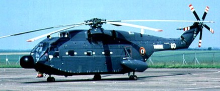 The basic structure of the Super Frelon was no different from the original model but for the US-built rotor system with six blades folded back automatically with the extreme rear of the tailboom, the watertight boat-type hull with a rear-loading ramp, and the three turbines were located side-by-side above the fuselage and the landing gear was of the fixed tricycle type. The two prototypes were followed by two pre-production models with Turmo III turbines and other variants with civil registrations.