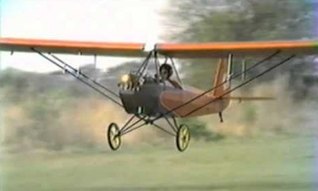 Constructed from gusset reinforced rectangular tubing. The fuselage weighs 12 lbs. Wood wings with ½ span ailerons. Centre mounted joy stick, rudder pedals, and tail skid.