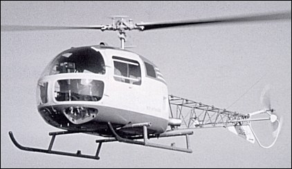 The A.115 was a developed version of the Bell 47J-3. Featuring an open rear fuselage structure and powered by a 480shp Turbomeca Astazou II turboshaft, one prototype, I-AGUC, was built.