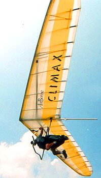 The 2000 Airborne Climax is a well rounded glider: recreational use, cross country flights or competition, it will do it all due to its light handling, plus easy takeoff and landing characteristics. It was available with 2 types of A frame, either standard or airfoiled aluminium tubes. Round carbon fiber crossbar. Aluminium alloy dive sticks and battons.