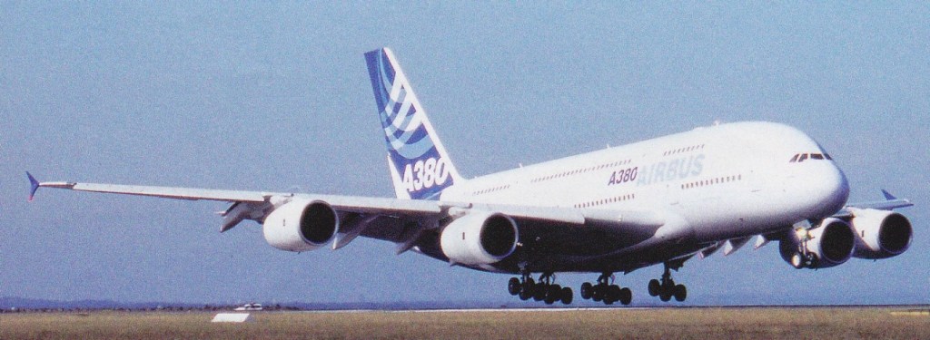 Originally known as the A3XX, the A380 is a double-deck, four-engined airliner. Airbus began engineering development work in June 1994 with key design aims including the ability to use existing airport infrastructure with little modifications to the airports, and direct operating costs per seat 15-20% less than those for the 747-400. With 49% more floor space and only 35% more seating than the previous largest aircraft, Airbus is ensuring wider seats and aisles for more passenger comfort. Using the advanced technologies, the A380 is also designed to have 10-15% more range, lower fuel burn and emissions, and less noise.