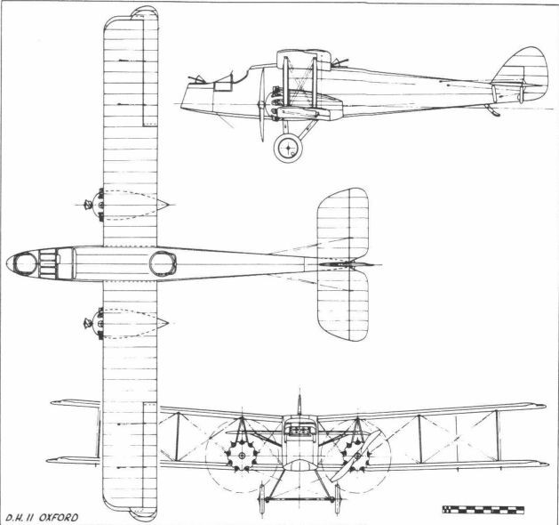 The DH.11 Oxford was designed by Geoffrey de Havilland for the Aircraft Manufacturing Company as a twin-engined day bomber to replace the Airco DH.10. It was designed (as required by the Specification) to use the ABC Dragonfly radial engine which promised to give excellent performance and had been ordered in large numbers to be the powerplant for most of the new types on order for the Royal Air Force.