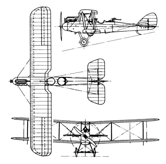 Armament: 1 x Vicker .303 sync. Through airscrew, 1 x Lewis .303 for observer