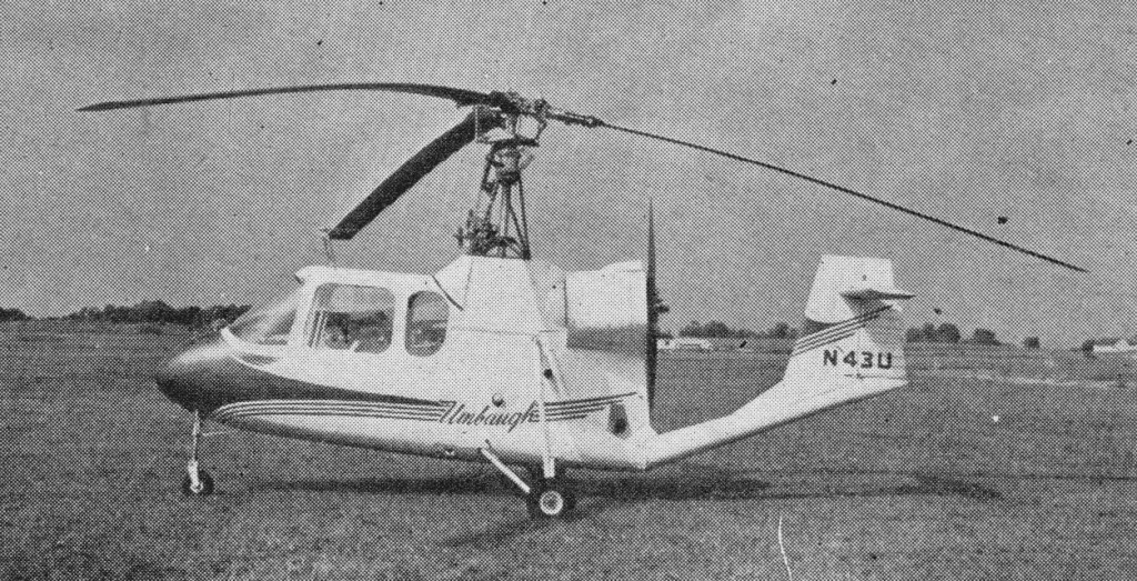 The U-17 gyrocopter was designed by Raymond E. Umbaugh with a 4130 welded tube centre section, aluminium forward fuselage and tail. His U-17 design was a tandem two-seat machine with a slim low-set tailboom and a single fin and T-tailplane. The prototype, N43U, was built for Umbaugh by the Fairchild Engine & Airplane Corporation at Hagerstown, Maryland. It made its first flight in mid-1959 and was powered by a 195kW Lycoming engine.