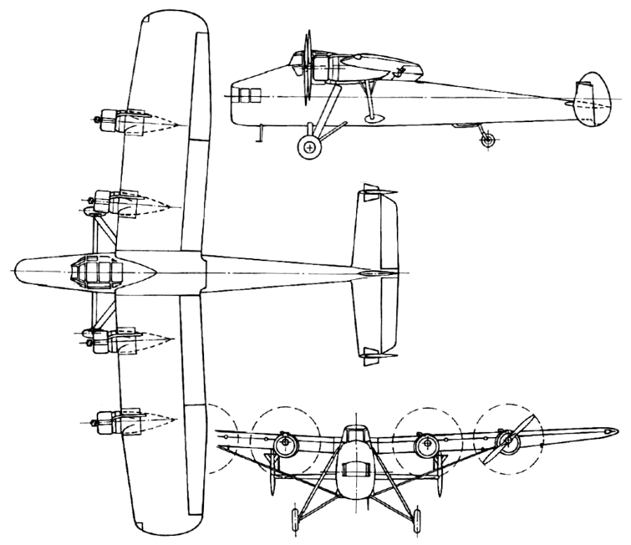 The A.S.39 design was a high-wing aircraft with four 130 hp Pobjoy Niagara V engines with fixed pitch propellers, extensive slats, flaps and drooping ailerons, fixed landing gear and an observer’s position in the nose. As for other aircraft carrier planes, the wings folded for storage. The Airspeed Fleet Shadower had a metal fuselage and three small fins.