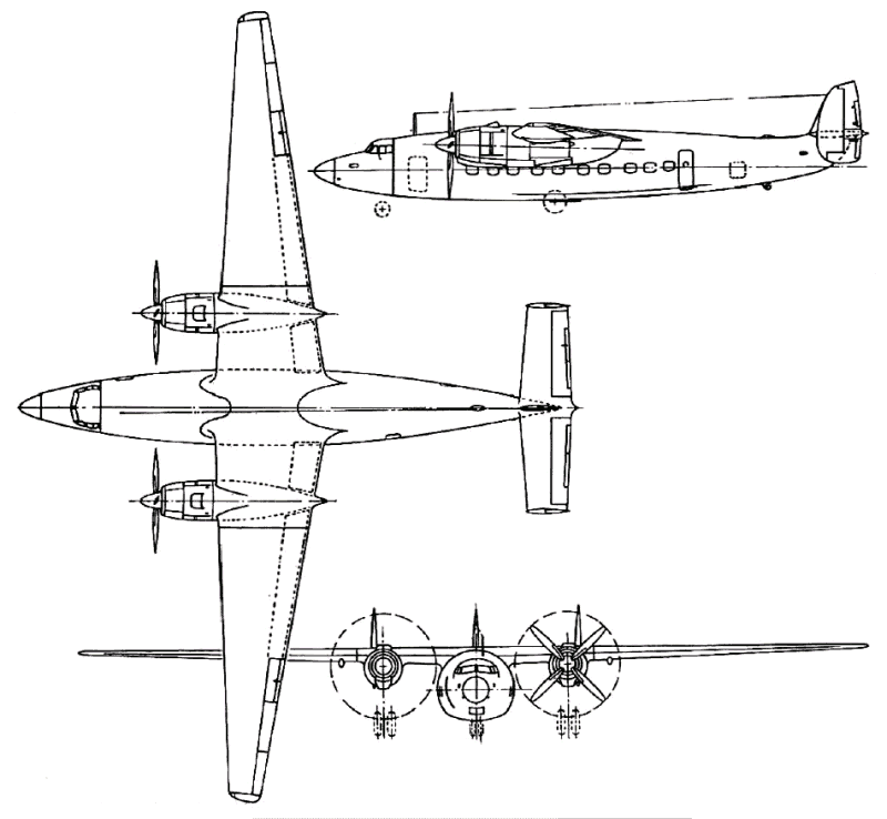 There was capacity for future “stretch”, and the wings were designed with strongpoints to accommodate a future powerplant change to four propeller turbines of the Rolls Royce Dart type.