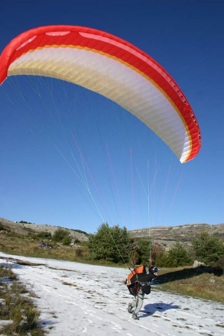 To aid pitch stability the internal diagonal structure was redesigned and by moving away from a full length diagonal structure advantages are save more weight, reduce the inertia of the wing and aid re-inflation after closures. As a further boost to security a soft nylon edging tape on the bottom surface leading and edge seams is less likely to snag and cravat the wing than the harder Mylar tape. To give the wing a feeling of safety and stability in roll a centre rib rather than a ‘weightshift cell’ is used. The centre rib is linked to the cells either side by diagonal ribs and controls the effect of weight-shift on the wing.