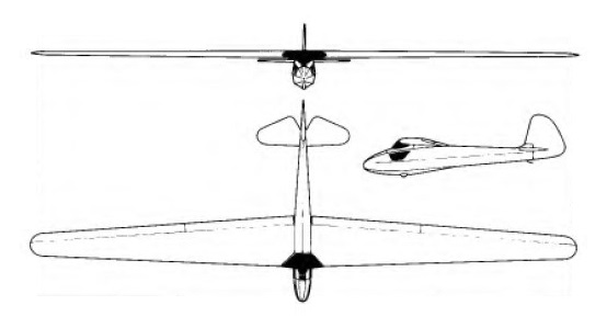One of the principal prewar German high performance designs, the single-seater Mü 13 was developed at the Munich Akaflieg from the two-seat Mü 10 Milan, which had been built there under the direction of Dipl-lng Egon Scheibe, who later formed, at the end of 1951, the sailplane firm bearing his name. The first single-seat Mü 13 flew in 1936. It has an all moving tailplane and DFS airbrakes for approach control.