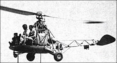 The first project of the American Helicopter company was the two-seat open-cockpit XA-5 “Top Sergeant”, which was based on the lower fuselage and undercarriage of a Sikorsky R-6 with an open rear boom and small rudder. It was driven by two tip-mounted 43kg AJ 8.75 pulse-jet engines driven by a fuselage-mounted compressor, and made its first flight in January 1949.