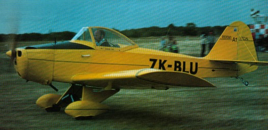 This aircraft, of which there is only one in existence (ZK-BLU), was the pioneer post-war homebuilt in New Zealand. It was built to Certificate of Airworthiness standard during the 1950’s by a CAD aeronautical engineer, Mr Cliff Andrews, although it later flew under a Permit to Fly. It first flew in 1957 but was largely inactive until 1973 when it was restored by Mr Andrews and sold to Alan Rowe of Lower Hutt. The aircraft’s construction employs a welded tube fuselage and tailgroup, and wings constructed of two wooden spars with a Warren-girder metal truss structure between. The whole airframe is fabric-covered.