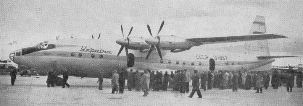 Design of the An-10 airliner began in November 1955 and the prototype (named Ukraina) first flew on 4 July 1957,