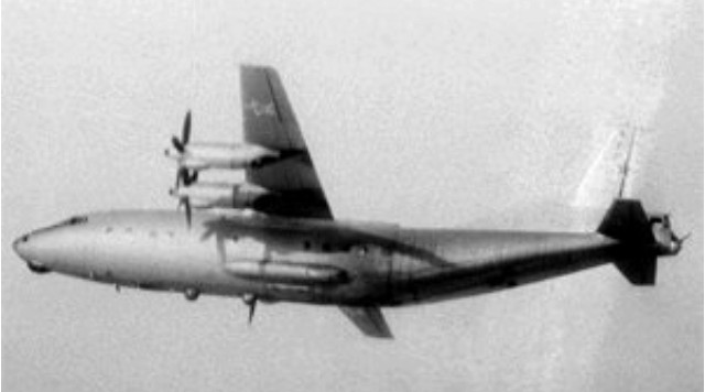 The An-12 (NATO reporting name ‘Cub’) is a military development of the An-10 airliner. The An-12 prototype (7900101) built at Irkutsk, flew first on 16 December 1957 powered by four Kuznetsov NK-4 turboprops of 4,000 horsepower and differs from the An-10 in featuring a more upswept rear fuselage and rear loading ramp, entering service in 1959.