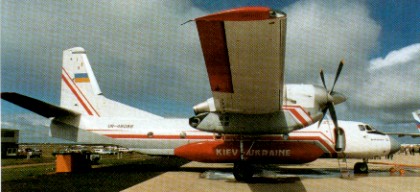 The An-24 was developed into the An-26 (freighter), the An-30 (survey/photo) and the An-32 (hot and high version). A short/medium-range twin-turboprop transport first flown July 1976, the An-32 has almost twice the installed power of the An-24.