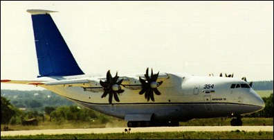 A new propfan medium-size wide-body short take-off and landing transport aircraft intended to replace An-12, the first flight was achieved on December 16, 1994 but the first prototype crashed on 10 February 1995 after colliding with its An-72 chase plane.