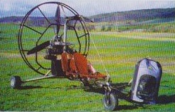 A twin engine two seat paraplane, the AB-Trike Twin is made up of stainless steel welded tubes, with two Solo engines powering one large propeller via a toothed belt. The machine is quiet enough to meet German regulations.