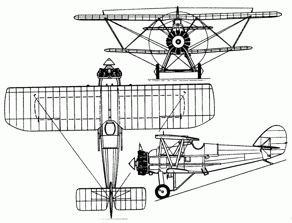 The cockpit was set aft from the powerplant and was open. The fuselage was capped aft by a conventional empennage featuring a rounded vertical stabilizer and applicable horizontal planes. The undercarriage was fixed in place and consisted of two main single-wheeled landing gear legs and a simple tail skid at the rear.
