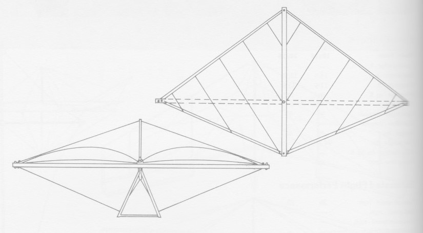A low aspect ratio glider, it folds down into a small package 5ft x 1ft.