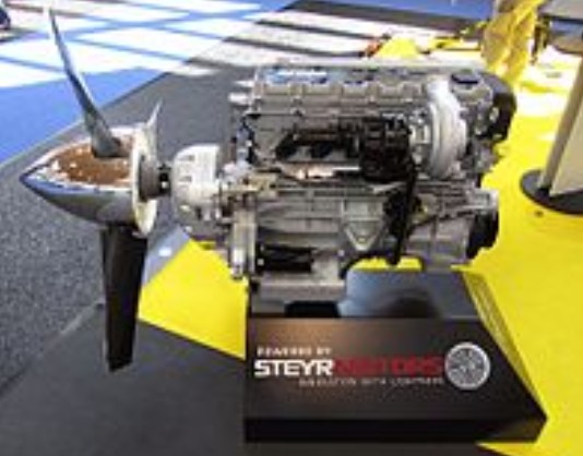 Based on Steyr Motors’ M1 3.2 liter “Monoblock”, the AE500 (6-cylinder, 280 hp) is the result of the cooperation between the two companies. It is used in the Diamond DA50.