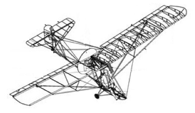 The rear mounted pusher engine with propeller and the fuel tank are also contained within the airframe. The joy stick mounted engine throttle control further simplifies the aircraft’s three axis flight controls. It incorporates a forward pilot cockpit protected by the fuselage frame work and providing a wide field of view.