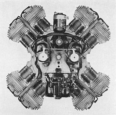 The Bakewell Wingfoot aero radial engine of 1939 consisted of four 90-degree V-twin engines, each with its own crankshaft, which was then geared to a common central propellor shaft. Propellor reduction gearing was fitted, the standard ratio being 1.57 to 1. This form of construction was claimed by the makers to give “inherent balance”.
