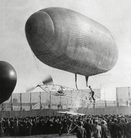 Upon hearing about the first dirigible flights in France in 1898, Thomas Scott Baldwin traveled across the Atlantic to learn more. Unlike a hot-air balloon, which flies, literally, whichever way the wind takes it, a powered dirigible moves under its own power, and can therefore be taken exactly where you want it to go and can also return to where you start. Baldwin also sought the insight of the aviation pioneer and professor at Santa Clara College, John J. Montgomery, whose propeller designs were adopted by Baldwin, and August Greth, a French doctor living in San Francisco who had become fascinated by military observation balloons while serving in the French army in Algeria.