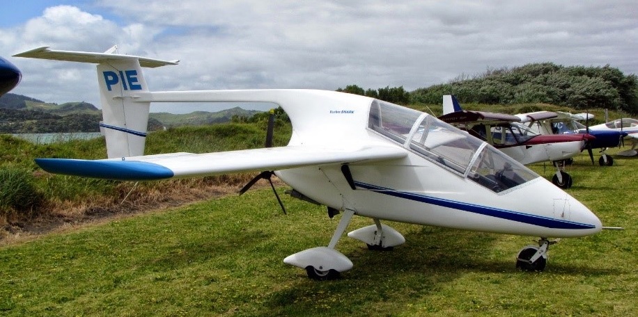 ZK-PIE also was powered by a Suzuki G 13 engine, but it had slotted flaps and ailerons instead of flaperons – as all subsequent Snarks have had. ZK-PIE suffered an engine failure on take-off on a test flight from Taieri on 25/1/98 and went through a fence.