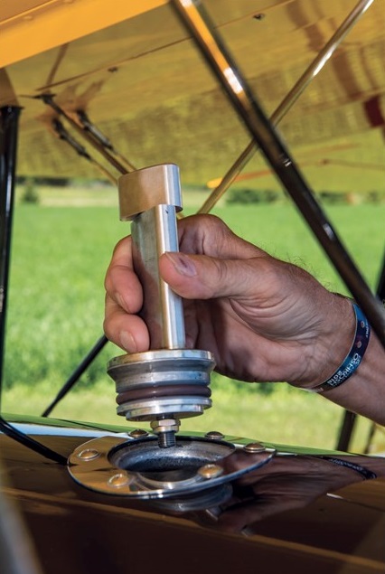 Modified standard flush cap to add a streamlined main tank vent stack. A long gun-drilled stud and threaded top knob replace the regular toggle latch assembly.