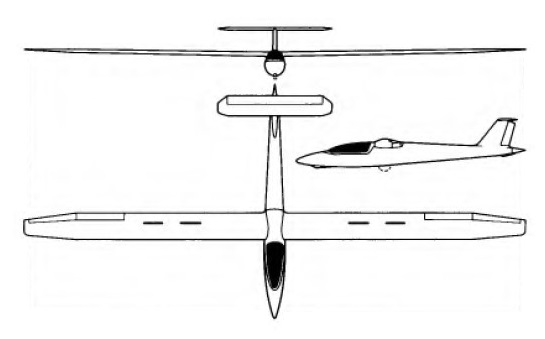 The BJ-3 is of largely all-metal construction except for the fuselage, which is of glassfibre from the nose to the wing spar, the remainder being a semi-monocoque with duralumin skin and stringers. Landing gear consists of a retractable monowheel aft of the centre of gravity, with a brake, and a retractable nosewheel; in its original form the BJ-3 was to have had a nose-skid. The one-piece plastic canopy hinges to open at the rear, jet fighter fashion, and the BJ-3 is fitted with a full instrument flight panel as well as VHP radio and oxygen. The wings have a basically duralumin load-carrying structure with a wide spar, and are covered with polystyrene foam with an outer protective skin of glassfibre which gives a smooth finish. An unusual feature is the very generous flap area, the Fowler flaps covering no less than 80% of the span and increasing the wing area by 30% when lowered to their full 30°; they have a steel tube spar and, like the main wing structure, are covered in polystyrene foam and glassfibre. Four sets of double DFS-type air brakes are fitted above and below each wing, and the ailerons are of foam and glassfibre. Another unusual feature for a sailplane is a tail braking parachute housed in the tail cone. The fin and rudder are of duralumin, whereas the fixed-incidence tailplane is of plywood-covered spruce construction.