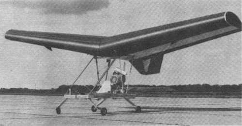 A wing from 1974 is made up of an aerial wing of inflatable material (Patent issued 1974). Partly inflated by lighter than air gas and the rest inflated by air during flight. Shroud lines are used to suspend a person beneath the aerofoil during flight. At least one was completed.