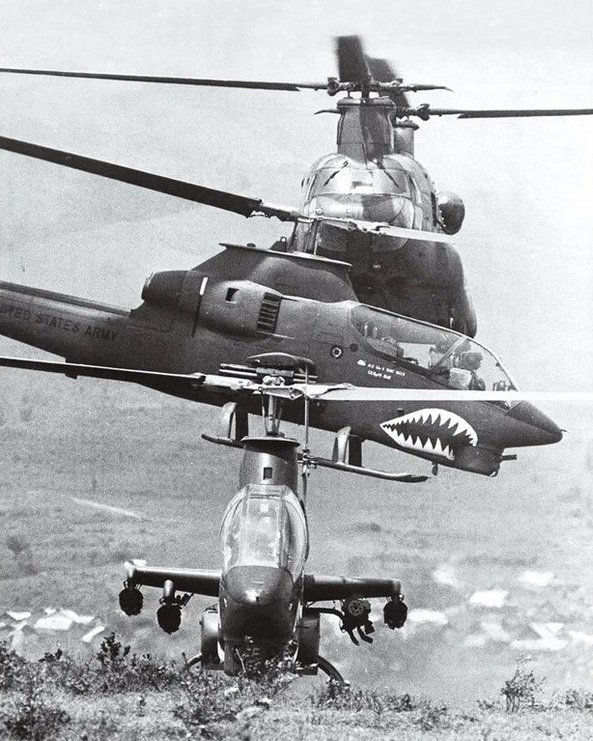 Bell AH-1 Gallery 02/01/202409/09/2025Terry Back to Bell AH-1 Cobra Turkish Army AH-1 Cobra, 2014 Cobras escort a CH-47 Chinook in April 1971 as it carries commandos into Laos. Combining a “white team” OH-6 scout (center) with “red team” Cobras creates the “pink team,” here, looking for trouble near Phuoc Vinh in 1969. AH-1Q firing TOW anti-tank weapon AH-1W BuNo 165045 / YM40 and AH-64D Apache AH-1S AH-1T Share this: Click to share on X (Opens in new window) X Click to share on Facebook (Opens in new window) Facebook Like Loading... Related