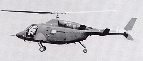 The D292 was based on Bell’s commercial Model 222 twin- turbine light helicopter and used that machine’s Avco Lycoming engines, transmission, and two-bladed main and tail rotors. The ACAP’s tailboom, vertical fin, and rotor pylon are almost identical in appearance to those of the 222, though the D292’s entire elongated pod-and-boom airframe is constructed of glass-reinforced plastic (GRP), graphite, and Kevlar. The use of a particular composite material for a specific aircraft component is determined by the strength, flexibility or other primary characteristic required of that component. The D292’s basic load-bearing structure is thus constructed primarily of graphite or graphite/epoxy, while the flooring and most of the craft’s exterior ‘skin’ is made of a more ballistically-tolerant Kevlar/ epoxy or glassfiber/epoxy blend. The seats for the helicopter’s two crew members and two passengers are of Kevlar/epoxy and are designed to absorb the high vertical loads of a forty-foot- per-second crash landing, as are the legs of the craft’s non-retracting tailwheel landing gear.