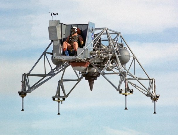 By always offsetting five-sixths of earth’s gravity, the vertically mounted turbofan engine enabled the LLTV to reproduce the characteristics of landing a lunar module on the moon’s surface. The LLTV was used to train America’s Apollo astronauts.